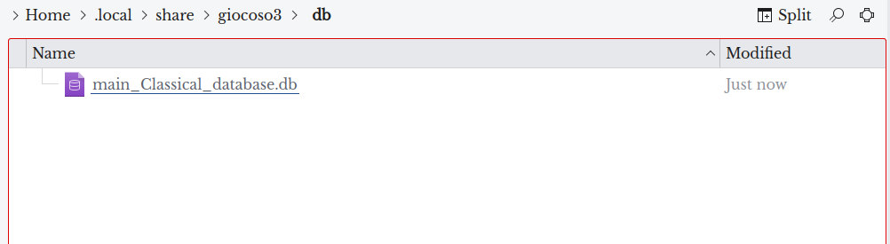 You'll note that all created databases end up in the $HOME/.local/share/giocoso3/db folder, with a .db extension tacked onto the end of their name (and, as I say, with underscores used to replace spaces, but with any upper/lower-case letters preserved).