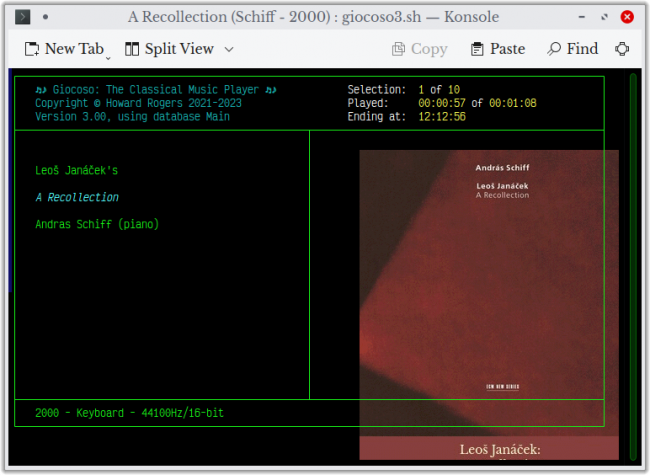 Also note that the Giocoso installer will install the Libre Baskerville font (another open source font, so no licensing issues arise). This is a non-monospaced font (so has nothing to do with the program display in a terminal session), but is instead used to create the 'caption labels' that appear underneath displayed album art. The use of this font is hard-coded and cannot be changed.