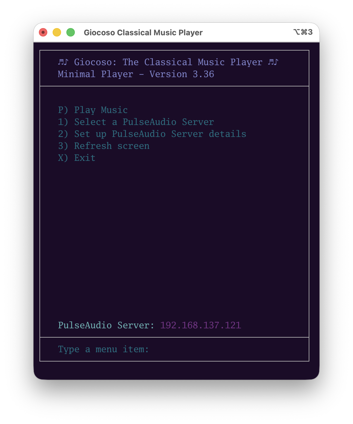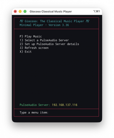 The Giocoso mini player comes with Option 2 : Set up PulseAudio Server details which, when taken, reveals this sort of screen: