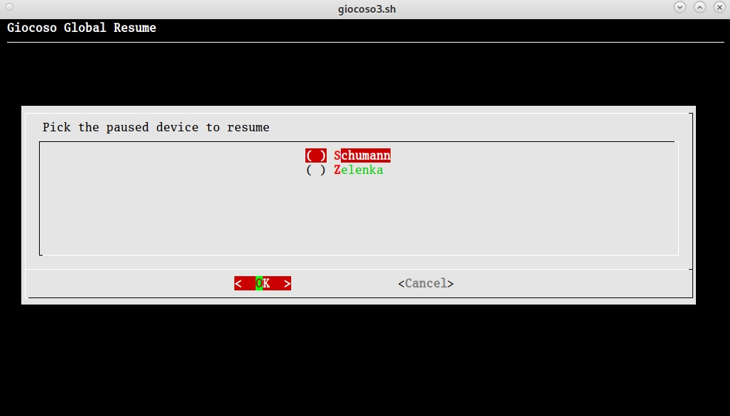 The list of available devices is constructed by querying the GLOBAL_PAUSESTATUS table, so if a particular device name is not listed, it's because it's not present in that table (for whatever reason). Your job at this point is simply to up- and down-arrow to highlight the appropriate device name and then press [the Space Bar] to put an asterisk next to the chosen name, indicated that it has indeed been selected. You then just press [Enter] to confirm the selection (or tab around to the [OK] button and then press [Enter]).