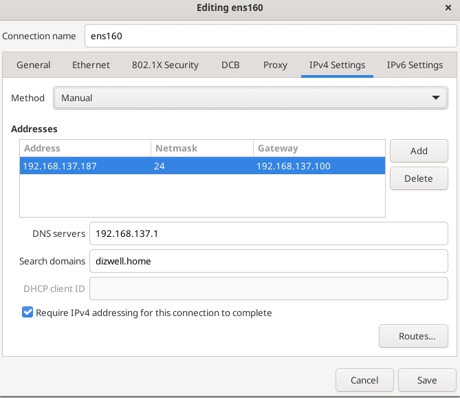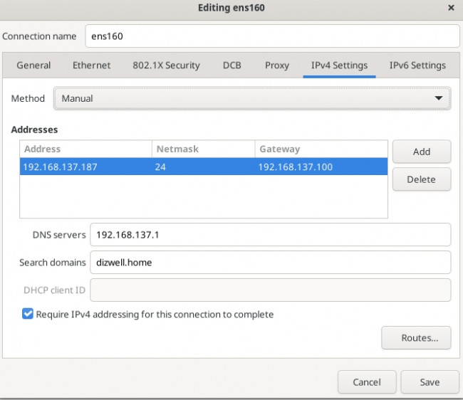 I also clicked the IPv6 Settings tab in the above screenshot and set the 'Method' to 'Disabled': your Giocoso Pro Server is not going to need to know how to handle IPv6 connections!