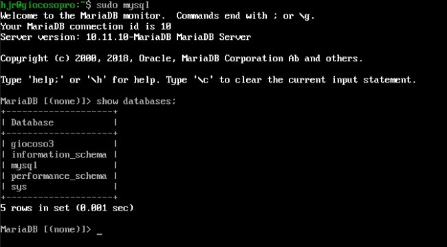 The last thing to check on the server is whether the script correctly created a giocoso3 database for you. Issue the command: