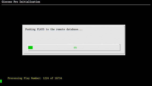 Should you press Ctrl+C in the middle of the play push, the process will immediately terminate. No particular harm is thereby done: if you re-launch Giocoso and take Option 2 once again, the push process starts over from the beginning and, if left to run to completion, those records that didn't make it across to the Pro database during the first interrupted run will make it second time of asking.