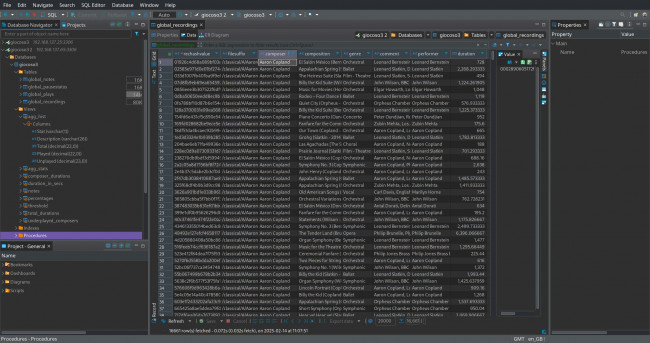 It's all very well having a remote, shared, Pro database of recordings and plays …but how can you see that data and make sure it's what you think it should be? To be honest, the best way of viewing data in a MySQL database is to install a GUI client and start browsing through the database structures and data in a nice, point-and-click manner: my own recommendation is to use the DBeaver tool for this purpose: