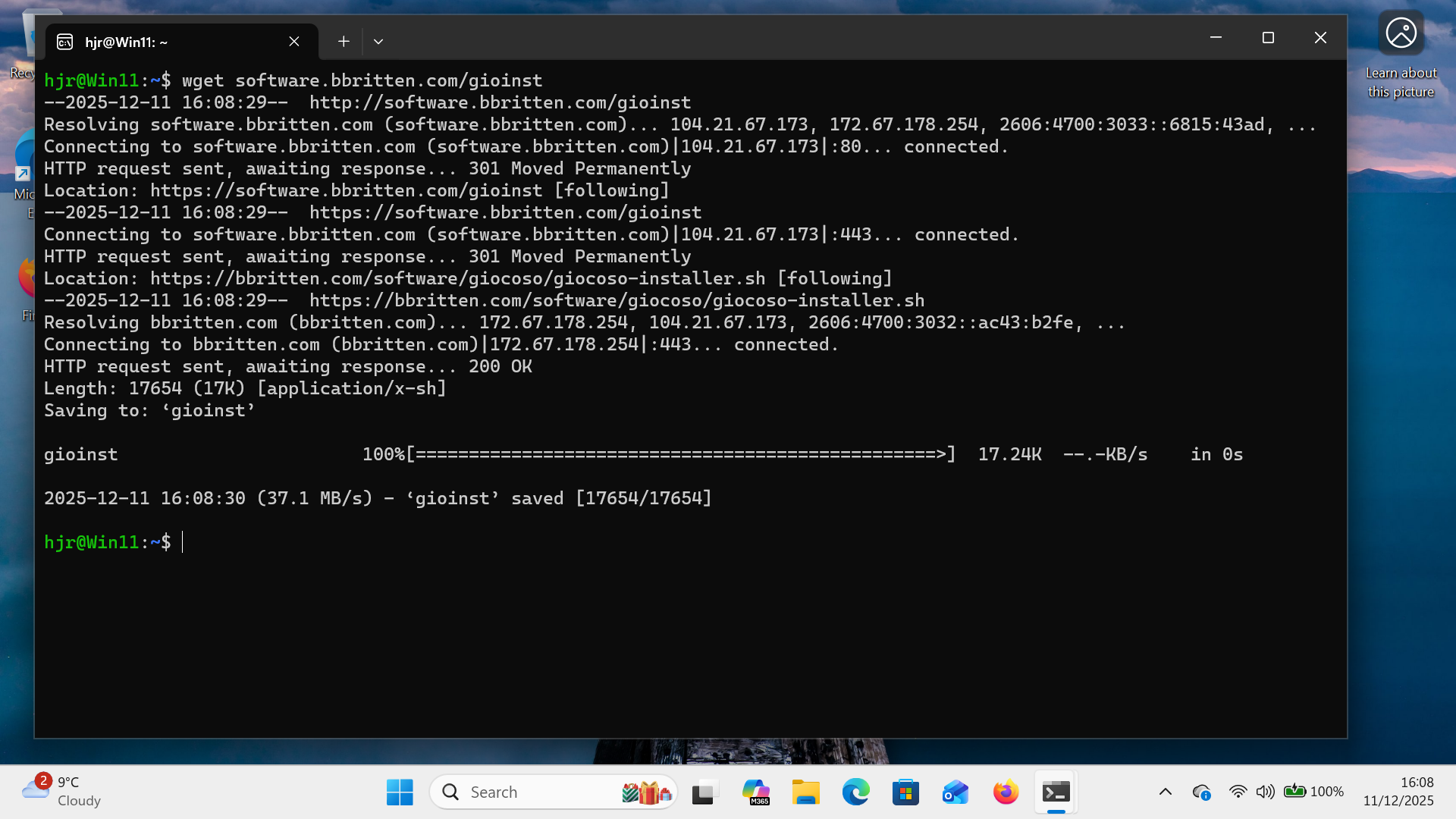 …without any drama at all, but when you try and run that script with the command bash gioinst this will happen: