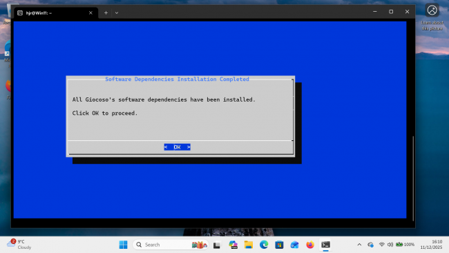 Here, a progress bar will indicate the installer's gradual installation of all the software packages Giocoso needs to work properly. There aren't that many of them and so it shouldn't take more than a couple of minutes for the installer to display this message:
