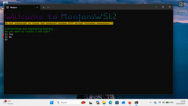 That's the new Manjaro getting itself provisioned properly. Part of that process is this prompt: