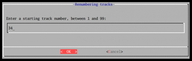 If I re-run this track numbering routine, this time I'll type something into the prompt:
